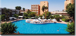 Mercure hotel The modern and spacious Mercure Hotel is set in its own well-tended gardens, just across the road from the Nile. Situated in the heart of town, it is just 500 metres from the Luxor Museum, 1 km from the Luxor Temple and a short stroll from the main shopping area.
