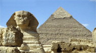 On the west bank of the Nile facing Cairo and on top of Giza plateau rise the three pyramids erected by Cheops, Chephren and Mycerinus, guarded by the mysterious Sphinx, which is a mythical statue with the body of a lion and a human head. The three pyramids and the Sphinx are considered one of the seven wonders of the World and the most important tourist site in Egypt.